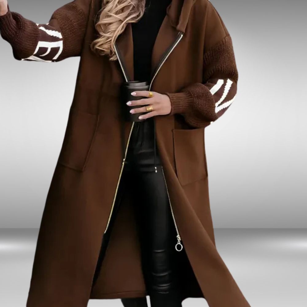 Einzigartiges Patchwork-Design Die IVANKA Jacke beeindruckt durch ihre einzigartigen Strick-Patchwork-Ärmel, die einen modernen und anspruchsvollen Look schaffen. Der Kontrast der Texturen verleiht eine elegante visuelle Tiefe, bleibt jedoch gleichzeitig leger und alltagstauglich. Ob für entspannte Nachmittage oder den täglichen Spaziergang – diese Jacke wird schnell zu Ihrem unverzichtbaren Begleiter.