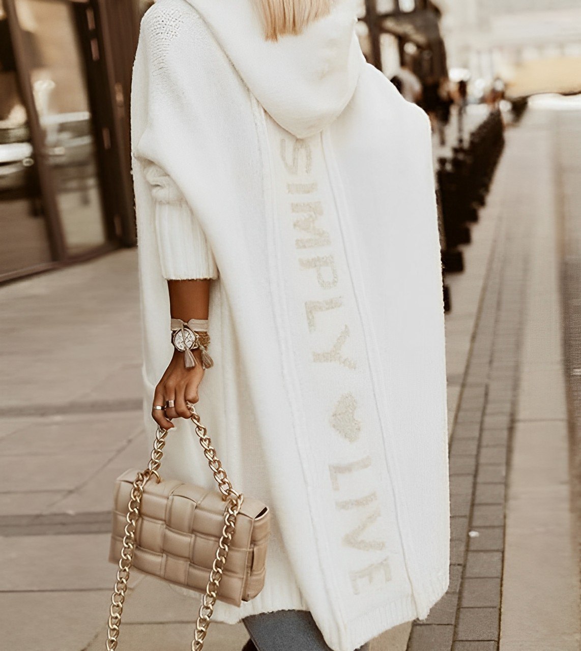 Jasmine - 2023 Lässiger offener Strickmantel mit Kapuze in mittlerer Länge Strickmantel