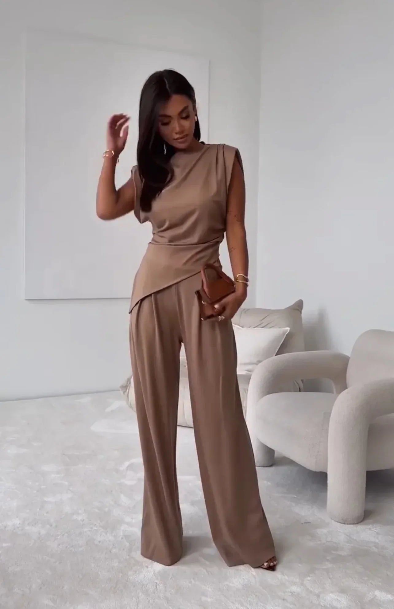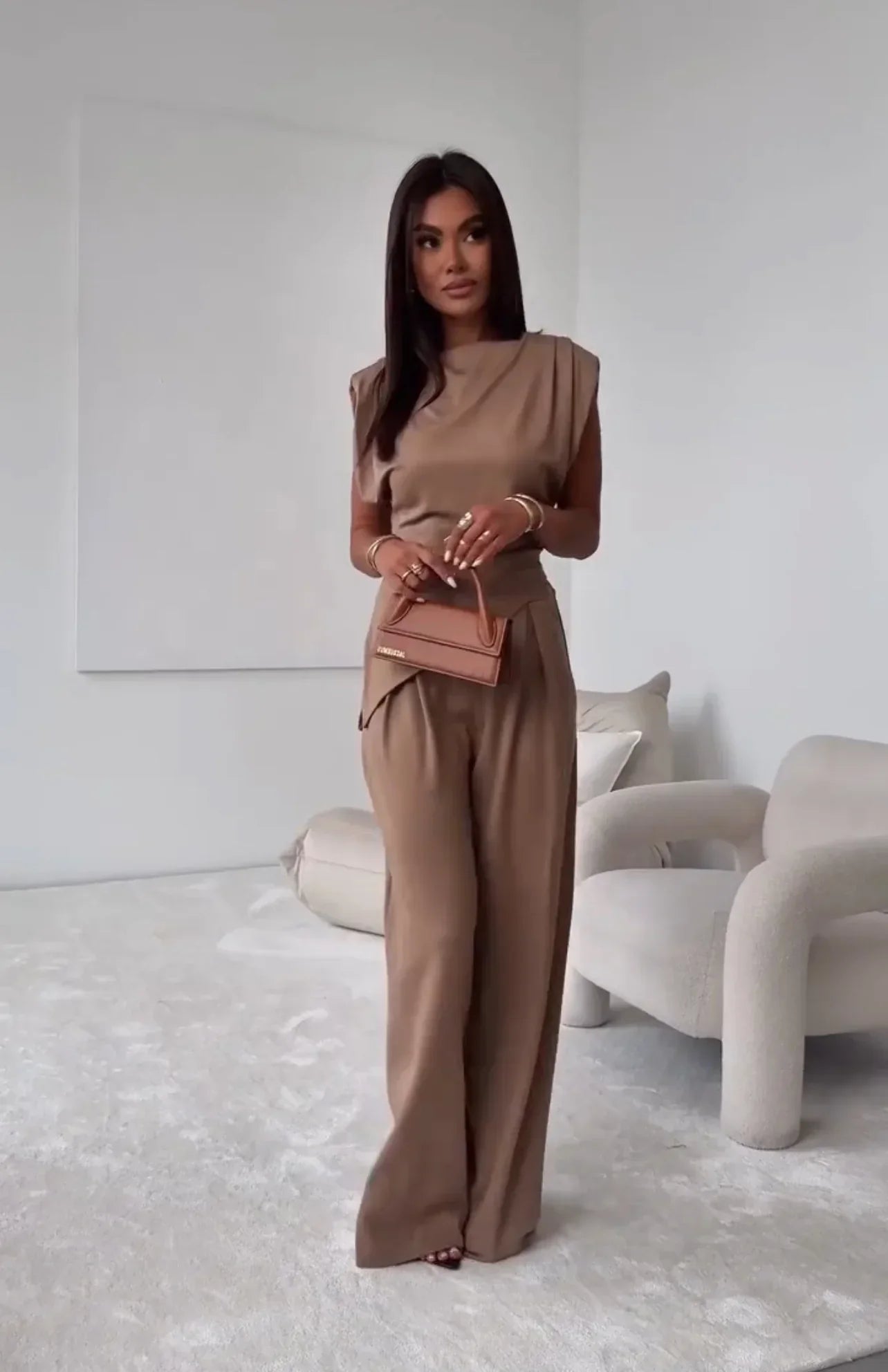 Es harmoniert perfekt mit dem ärmellosen Schnitt und sorgt für eine klare, moderne Silhouette – für eine selbstbewusste Haltung und ein Outfit mit besonderer Ausstrahlung.