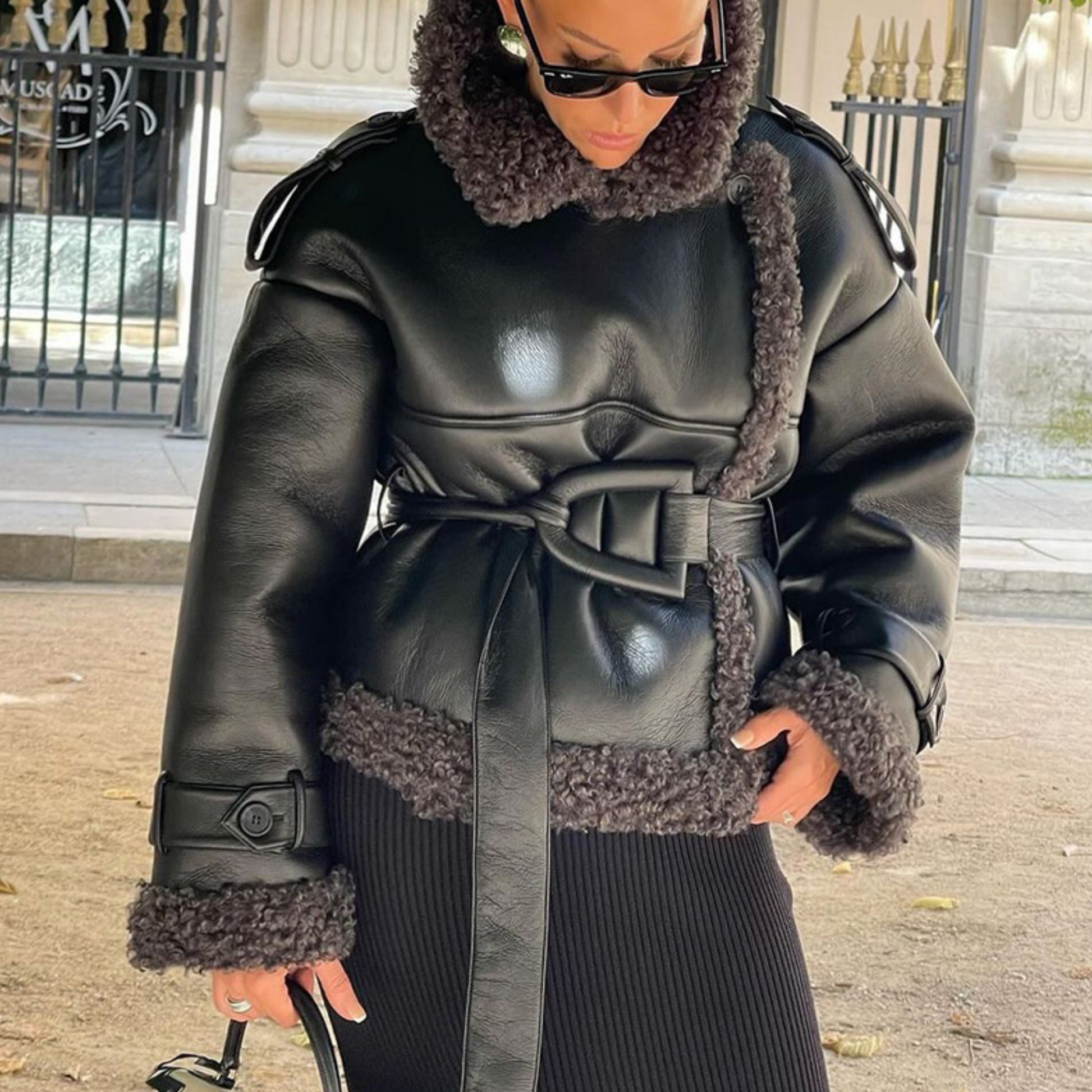 Nina™ | Luxus Patchwork Leder- und Lambwollmantel