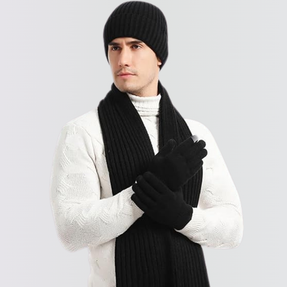 Entdecken Sie unser dreiteiliges Unisex-Set, das der perfekte Begleiter für den Herbst ist und gleichzeitig Ihrem Stil einen Hauch von Eleganz verleiht. Jedes Teil dieses Sets - Mütze, Schal und Handschuhe - wurde sorgfältig aus einem isolierenden Material gefertigt, das Komfort und Wärme bietet, damit Sie Ihre Aktivitäten im Freien genießen können, ohne sich vor der Kälte fürchten zu müssen.